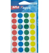 ETIQUETTES AUTOCOLLANTES DIAM 15mm COLORIS ASSORTIS - PAQUET DE 672