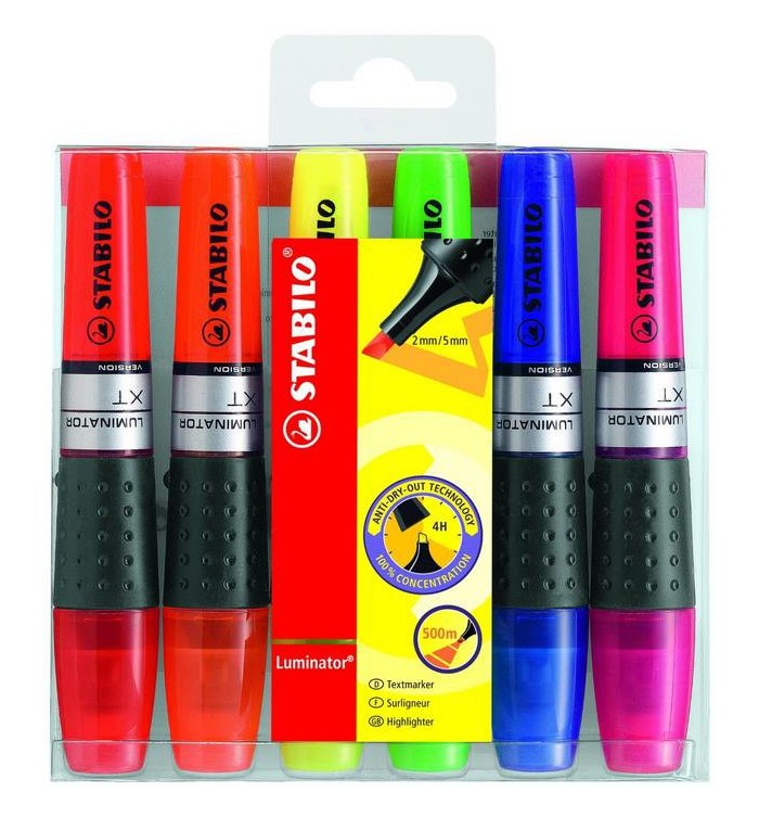 Commandez dès aujourd'hui le lot de 6 surligneurs STABILO Luminator pour améliorer l'efficacité de vos annotations et souligner l'importance de vos idées.